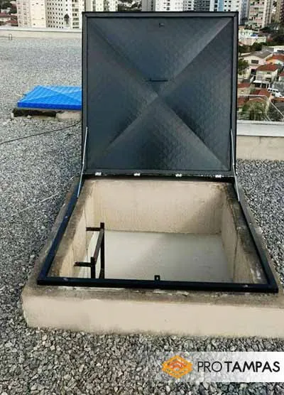 Sob um olhar mais “técnico-prático”, podemos assim classificar, vale frisar ainda que a tampa alçapão alumínio tem a função de vedar e proteger o acesso dos mais diferentes tipos de lajes e telhados, graças a sua vedação garantida, com acabamentos feitos de borrachas especiais em todas as bordas da tampa. Ainda neste plano, cabe ressaltar que a tampa alçapão metálica fica apoiado no local que confere a base da tampa alçapão alumínio, é bom que se diga - vedado por borrachas especiais.