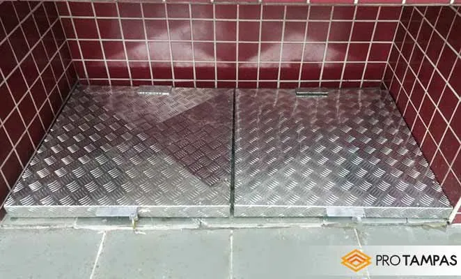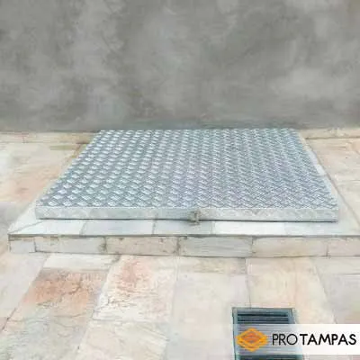 A TAMPA EM CHAPA XADREZ PREÇO É NORMALMENTE COMERCIALIZADA/INSTALADA JUNTO À DOBRADIÇAS DE ALUMÍNIO
